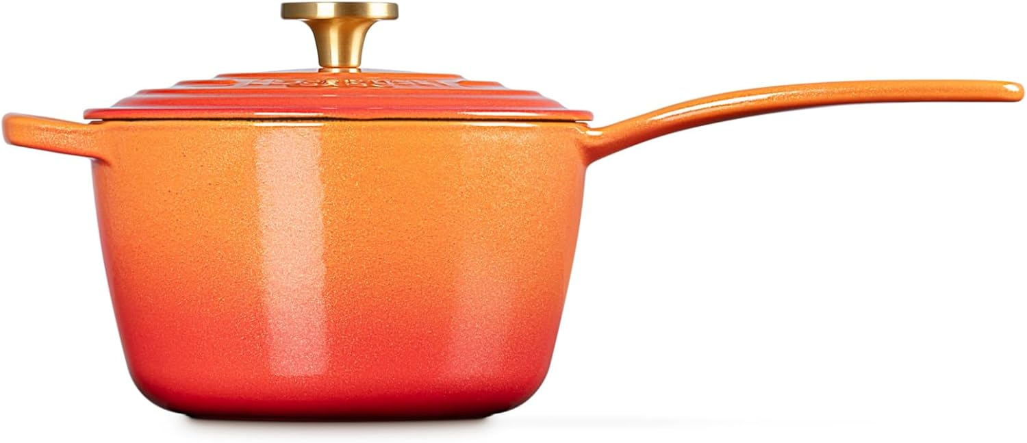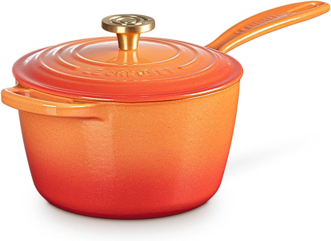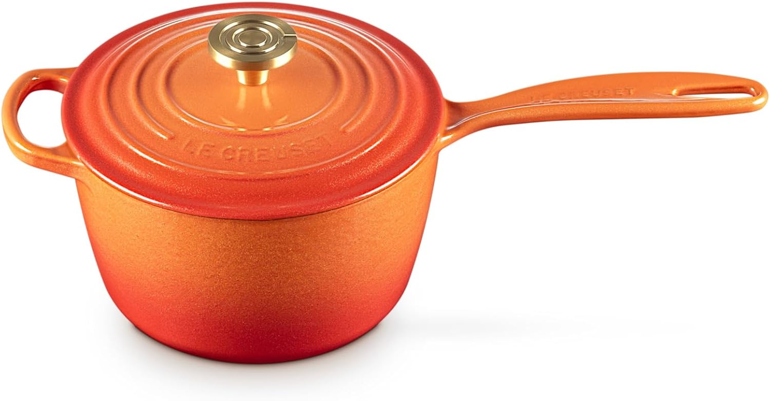 Le Creuset Enameled Cast Iron Signature Round Saucepan, 2.25 qt., Flamme Doree with Crucible Knob