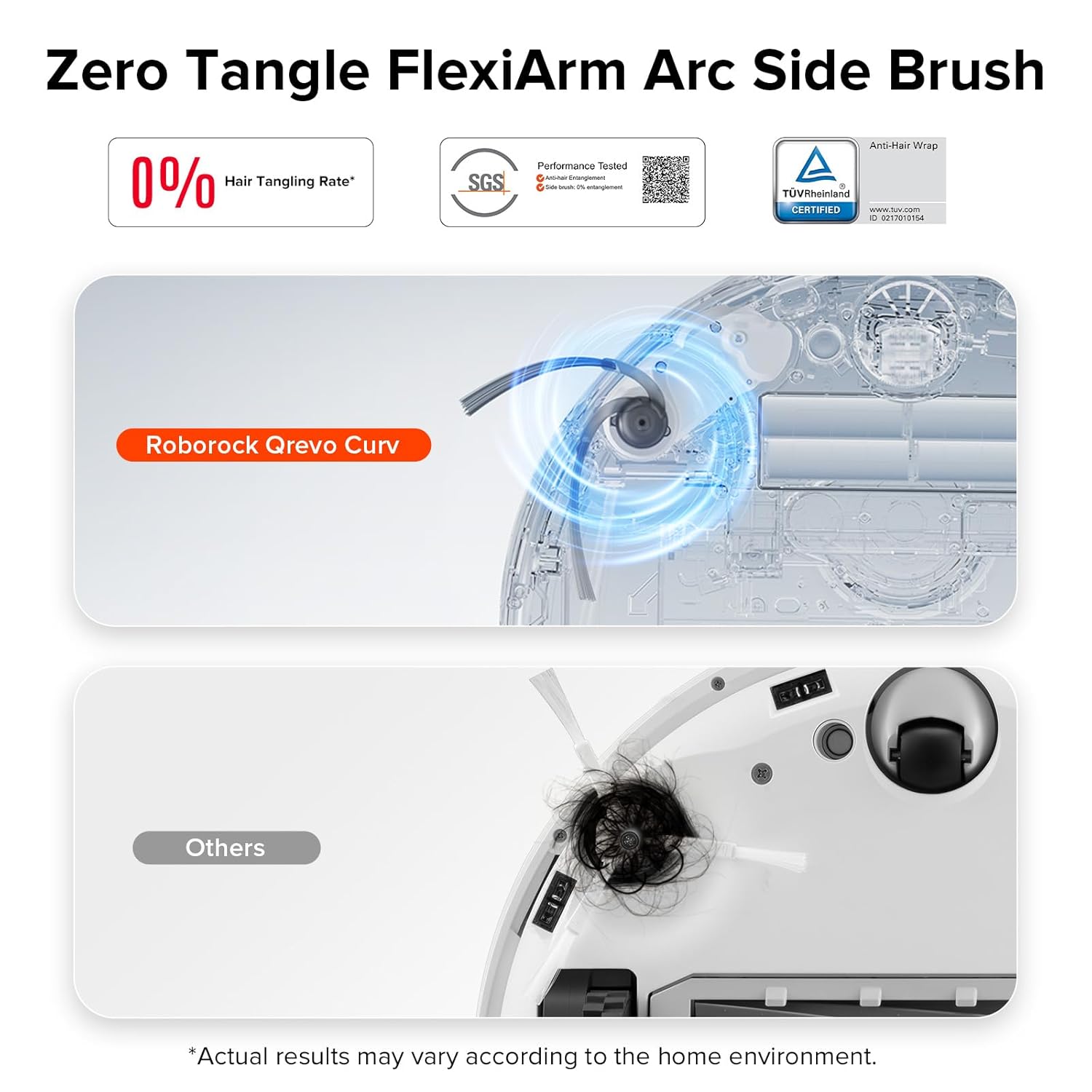 • Zero-Tangling FlexiArm Arc Side Brush: The unique arc-shaped asymmetric brush harnesses centrifugal force to prevent hair tangling, guiding it effortlessly to the bristle ends. SGS and TUV certified, this design ensures efficient and tangle-free cleaning.