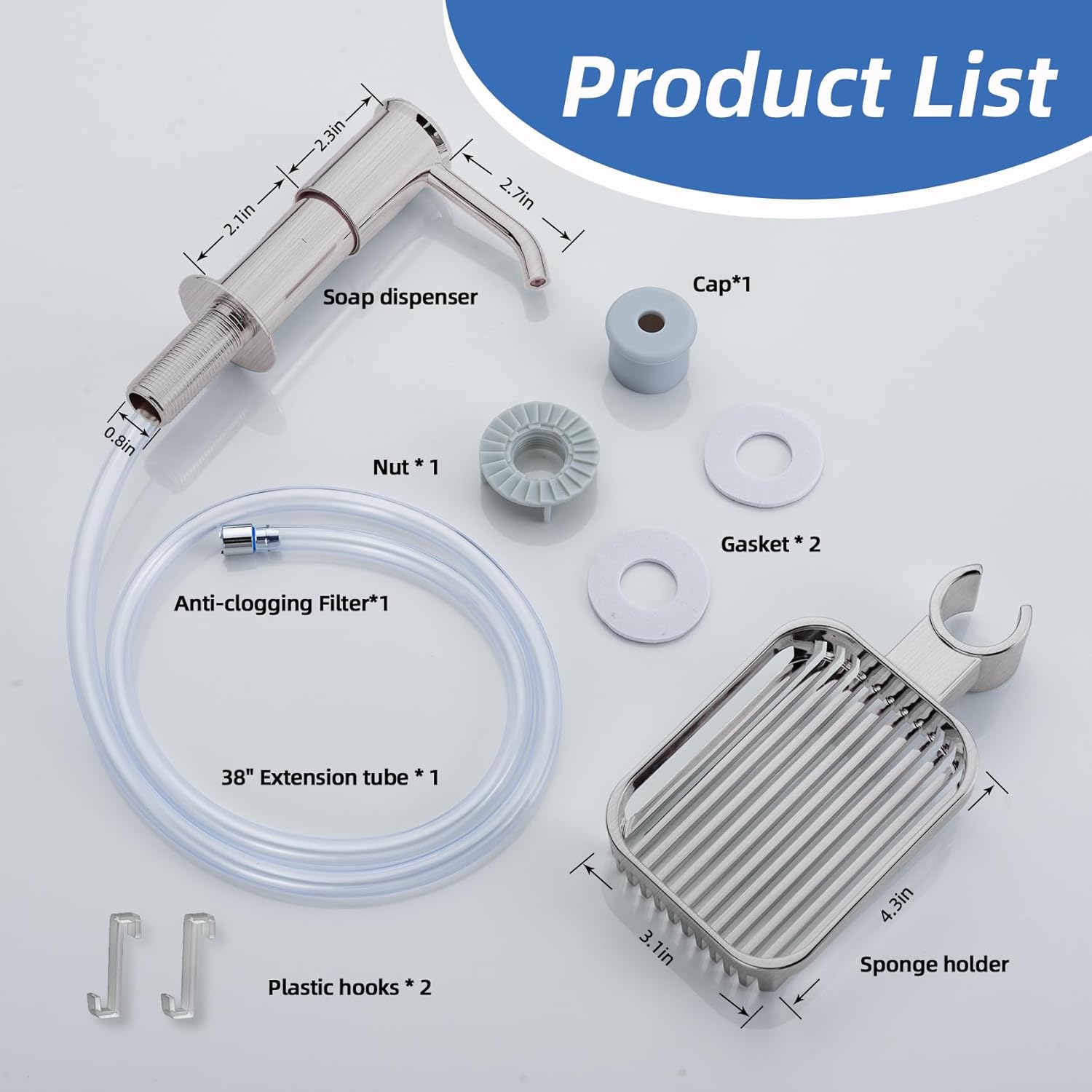 - 【With Sponge Holder】The sponge holder is designed to conveniently place small items and keep the kitchen tidy. The sink soap dispenser set made of sturdy ABS plastic. The Brushed Nickel finish makes it resistant to corrosion and rust.