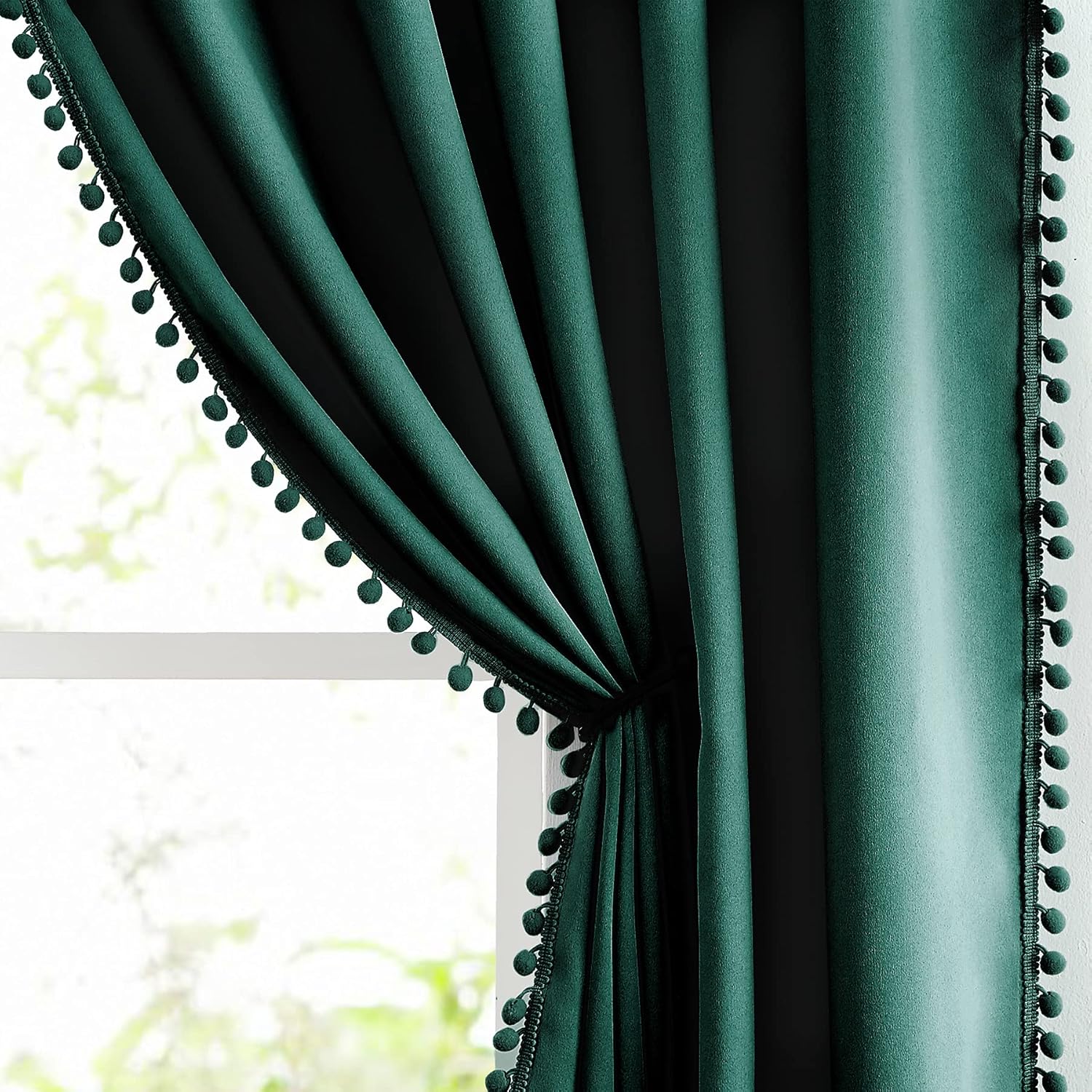 - CUTE POM POM CURTAINS: Decorated with matching green pom-pom trimmings on each border, this adorable window curtain set offers a cozy, comfortable and inviting atmosphere and adds cheerful touches to your living space. Perfect for living room, kids room, playroom, kindergarten, bedroom, guest room.