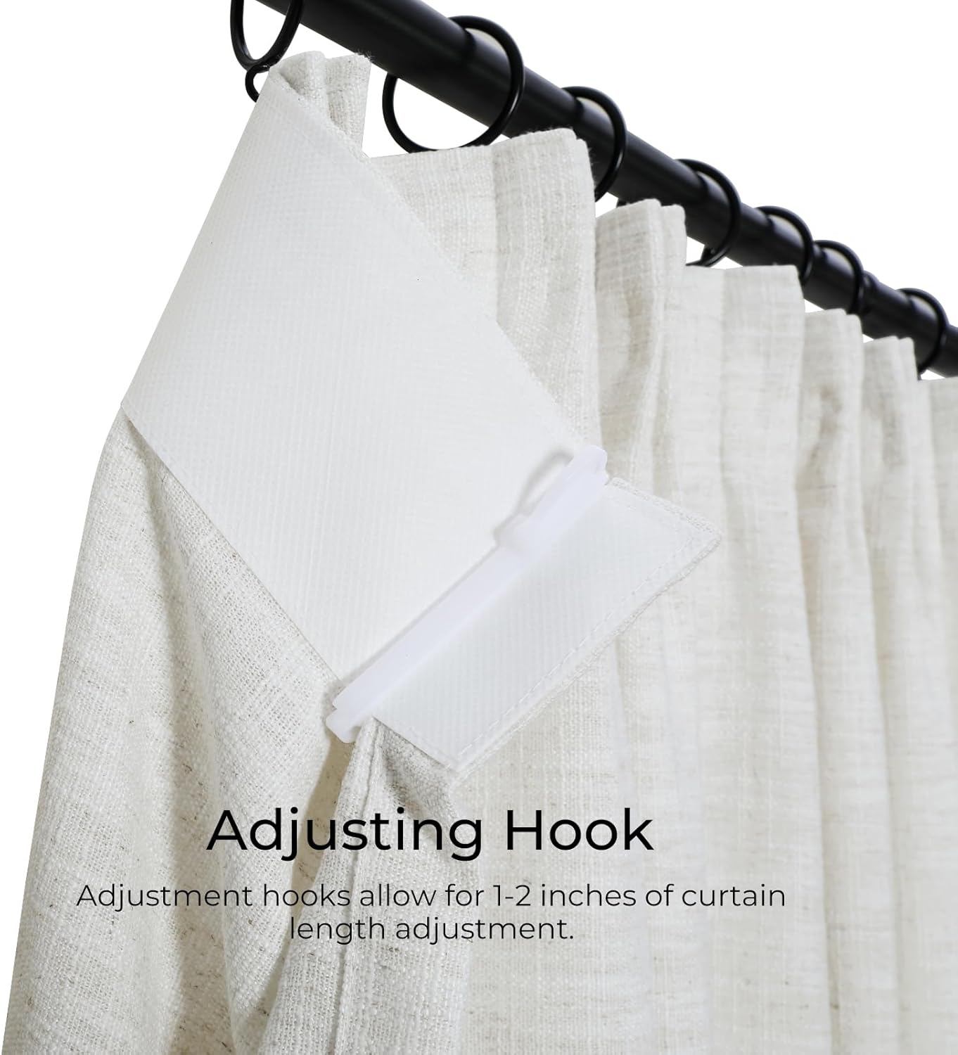 • Come with Adjustable Pin Hooks: 6 pleats for 26″ width;8 pleats for 36″ width;10 pleats for 52″ width; 14 pleats for 72″ width; 16 pleats for 84″ width; 19 pleats for 100″ width; 21 pleats for 110″ width, 23 pleats for 120″ width, 29 pleats for 150″ width.